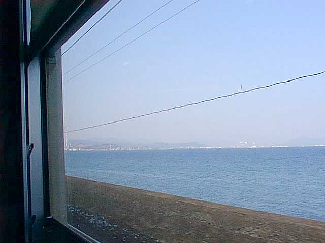 いつの間にか、眠ってしまった。起きると海岸線沿いを走っていた。海育ちのせいだろうか。海を見ると安心する。さっきのお婆さんの荷物を網棚から下ろしてやり、自分もホームへ降りる。車内のアナウンスによると、広島行の列車はすぐに出るらしい。 |
