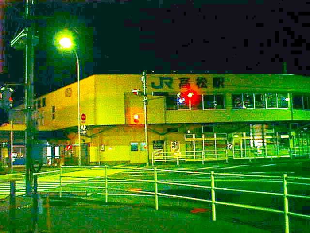 | 20時45分頃松江駅到着。松江を今日の終着点とする。高松の時と同じようにファミレスを探す。高松より大きい街という印象を受けて期待したのだが、見つからない。2時間ほど歩く。駅員にファミレスはないかと聞いたが、無いと即答される。諦める。とりあえず、駅の待合室に座り、コンビニで買ったおにぎりを食べる。駅が閉まるまで待合室に居座ることにする。しかし、日付が変わるのと同時に駅から閉め出される。高松駅より閉まるのが早い。 |
